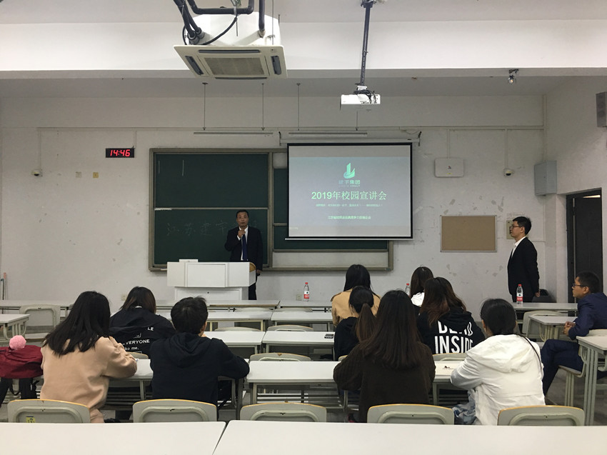 10月25日下午,集團公司在南京審計大學敏知樓103室舉行了一堂生動的企業宣講會。集團副總經理張幫華、辦公室主任張瑩等相關領導、老師和學生們出席活動。