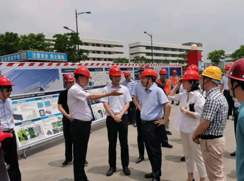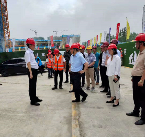 6月28日上午,南京市委常委、江北新區黨工委專職副書記羅群視察集團承建的國際化名醫中心項目,并督導安全生產工作。新區中央商務區主任陳建鵬、新區建設與交通局長許蕾等部門負責人隨同檢查,集團董事長管民良、副總經理張幫華等在項目現場陪同。