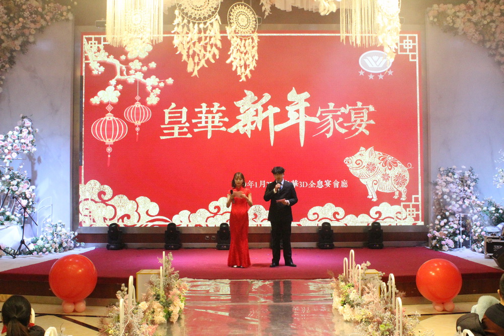 1月27日中午,由集團皇華國際大酒店主辦的“夢想起航再創輝煌”新年家宴在宴會大廳隆重舉行。集團董事長管民良、總經理管民祥、副總經理周耀庭、黃益寶、財務總監郭正基、皇華國際大酒店董事長王衛紅、總經理夏曉春、建宇機關員工及皇華的全體員工們參加了此次盛宴。