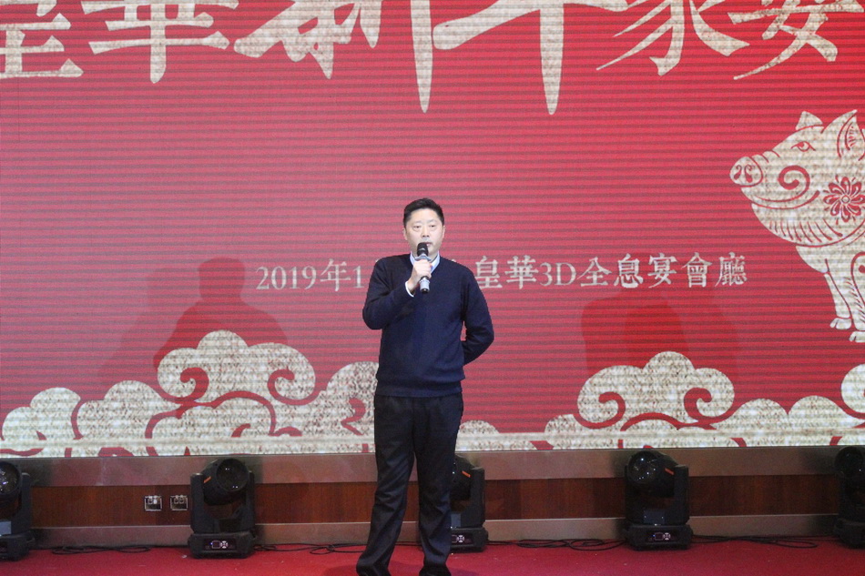 宴會上,集團公司董事長管民良發表講話,他充分肯定了酒店在過去七年尤其是2018年所取得的成績,集團將不忘初心、加大投入,一如既往的支持酒店的發展,也希望酒店全體員工不忘初心、用心服務,努力工作,把經濟效益和社會效應并重,將皇華品牌做大做強。