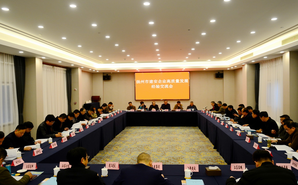 近日,揚(yáng)州市建安企業(yè)高質(zhì)量發(fā)展經(jīng)驗(yàn)交流會(huì)在揚(yáng)州舉行,總結(jié)2018年揚(yáng)州建安企業(yè)在高質(zhì)量發(fā)展中取得的成績(jī)。各縣市區(qū)重點(diǎn)企業(yè)的主要負(fù)責(zé)人、協(xié)會(huì)會(huì)長(zhǎng)、秘書(shū)長(zhǎng)50余人參加了會(huì)議。揚(yáng)州市建筑行業(yè)協(xié)會(huì)任壽松會(huì)長(zhǎng)主持會(huì)議,集團(tuán)董事長(zhǎng)管民良在會(huì)上交流講話。