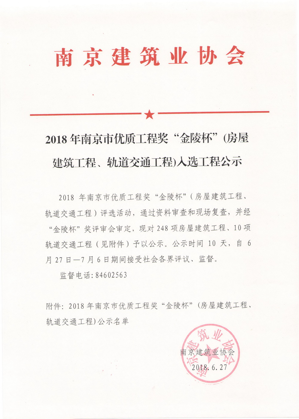 近日,從南京市城鄉(xiāng)建設(shè)局、南京市建筑行業(yè)協(xié)會(huì)傳來(lái)喜訊,集團(tuán)南京分公司承建的“錦華新城E19#”、“文承熙苑1#、5#、7#、8#”項(xiàng)目一舉獲得五個(gè)“2018年南京市優(yōu)質(zhì)工程獎(jiǎng)-金陵杯”,評(píng)優(yōu)率100%,其中二項(xiàng)工程擬推薦申報(bào)省“揚(yáng)子杯”。