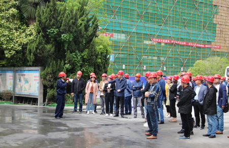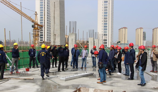 上午,觀摩團一行首先來到了泗陽實驗初級中學(xué)西校區(qū)進行裝配式觀摩,全體人員分三批有序地在項目負(fù)責(zé)人和項目現(xiàn)場管理人員的帶領(lǐng)下深入施工場地進行了細(xì)致地觀摩與了解,觀看了預(yù)制柱現(xiàn)場吊裝施工工藝全過程,實地察看了柱梁板節(jié)點構(gòu)造,聽取了項目負(fù)責(zé)人與現(xiàn)場管理人員關(guān)于裝配式總體施工流程以及吊運安裝等一系列關(guān)鍵工序的詳細(xì)介紹并就現(xiàn)場實物進行了問答環(huán)節(jié)。大家不停地稱贊、即時地交流,紛紛表示要以本次觀摩項目為標(biāo)準(zhǔn),在各自項目上查找不足,努力提高管理水平。最后全體人員參觀了集團投資建設(shè)的泗陽東城一品小區(qū)。
