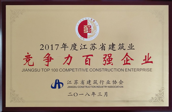 集團公司榮獲2017年度“江蘇省建筑業(yè)競爭力百強企業(yè)”,董事長管民良榮獲2017年度“江蘇省建筑業(yè)優(yōu)秀企業(yè)家”。本次評選活動由江蘇省建筑業(yè)“雙百強”企業(yè)評價審定委員會綜合了各參選企業(yè)的經(jīng)營規(guī)模、資產(chǎn)規(guī)模、盈利能力、上交增值稅、科技進步、管理水平、精神文明等7項分類指標和全年營業(yè)收入合計、建筑業(yè)總產(chǎn)值等細化指標,按競爭力指數(shù)總分值得出評價排名結(jié)果。