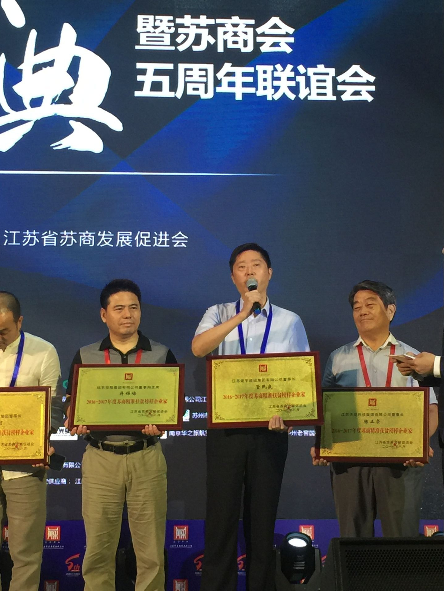 日前,江蘇省蘇商發展促進會主辦的“實業強國 實力蘇商”系列推選頒獎盛典在南京紫金山莊隆重舉行。蘇商會以獨立、客觀的立場,對影響江蘇經濟和社會發展的典型企業和企業家進行推選和表彰。集團榮獲“2016-2017年度江蘇地標型企業”,同時董事長管民良榮獲“2016-2017年度蘇商精準扶貧榜樣企業家”獎。