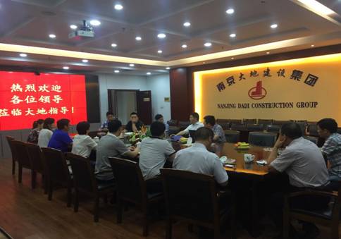 7月11日下午,泗陽縣住建局周局長率泗陽縣各相關(guān)單位負(fù)責(zé)人一行共十人蒞臨南京大地集團考察,集團公司管民祥總經(jīng)理、張?zhí)焯腋笨偂⒛暇┓止局茉虏ǜ苯?jīng)理隨同視察。