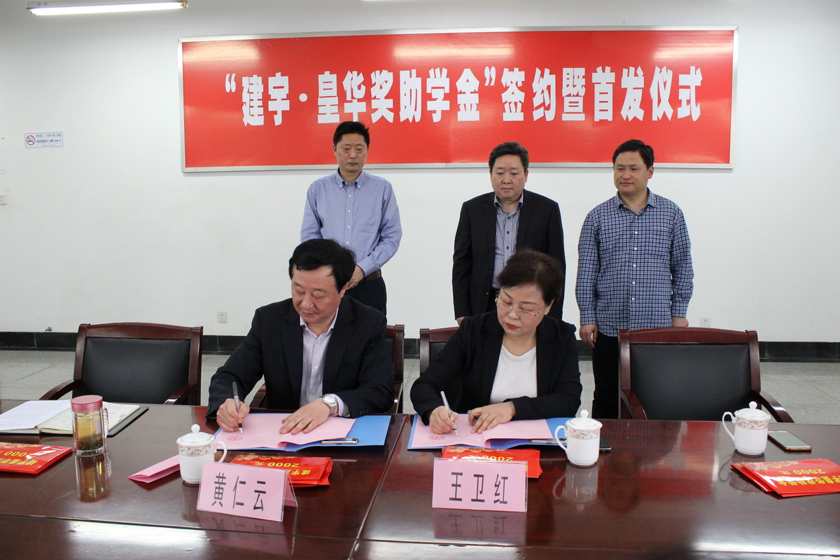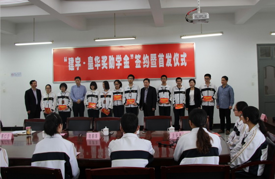 郵中黃仁云校長首先代表學校發表了熱情洋溢的講話,對建宇?皇華獎助學金的捐贈表達了謝意和敬意,隨后皇華國際大酒店王衛紅董事長代表集團與郵中黃仁云校長簽署五十萬元捐贈協議。董事長管民良及與會領導共同為學生發放了獎助學金,首批20多名郵中學子現場接受獎勵和資助。受助學生陸佳作為學生代表發言,感謝學校和建宇集團的關心和培養。