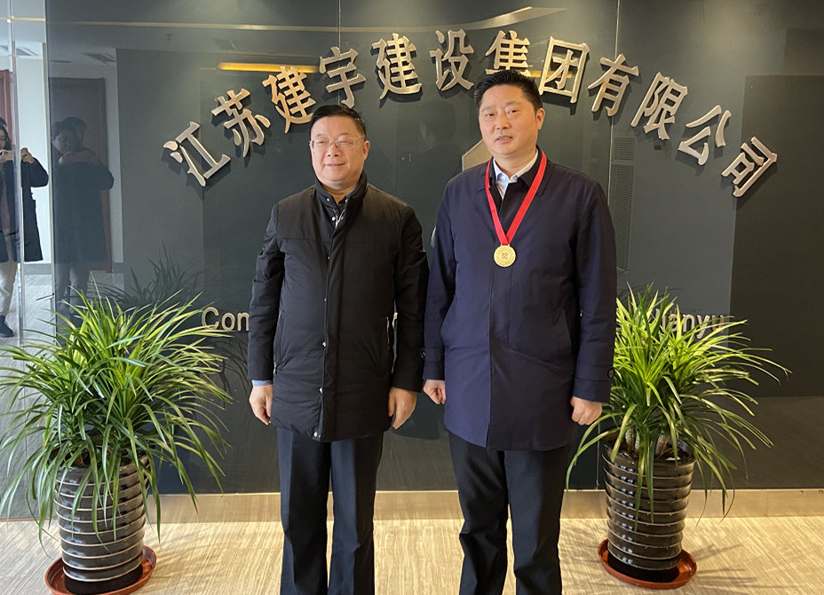 3月16日上午,高郵市政協副主席錢富強一行代表市委、市政府親赴建宇集團,授予集團董事長管民良2020年建筑業納稅十強的金質獎章,為建宇鼓勁加油,共謀發展。