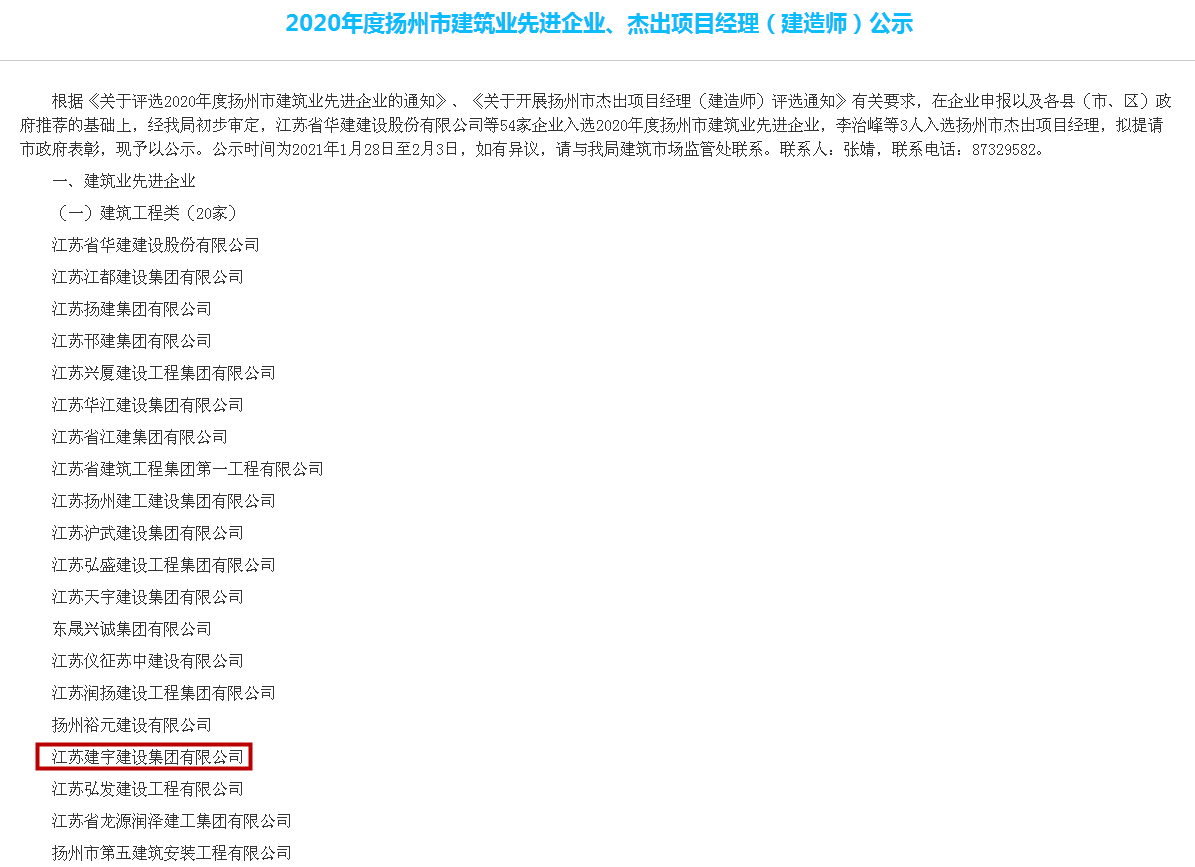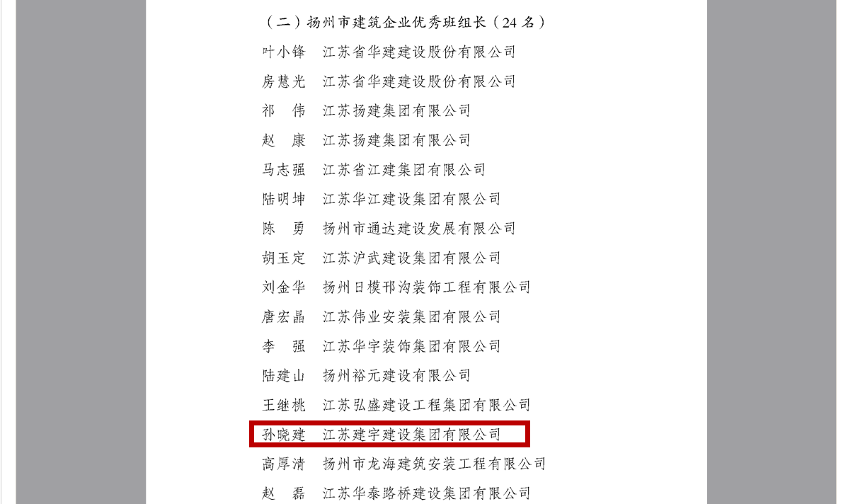 近日,集團(tuán)又一次被揚(yáng)州市人民政府評(píng)為2020年度揚(yáng)州市建筑業(yè)先進(jìn)企業(yè),這是集團(tuán)第十次獲此殊榮。同時(shí)集團(tuán)第五次榮獲2020年度揚(yáng)州市建筑施工安全生產(chǎn)先進(jìn)集體,孫曉建同志榮獲優(yōu)秀班組長。