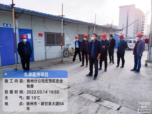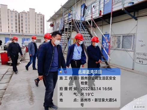 揚州北湖藍灣項目部建立疫情防控組織體系,嚴格執行封閉式管理,加強監督。項目專職安全員帶隊對施工區、生活區安全問題進行集中的隱患排查與整改,消除安全隱患。
