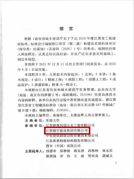 日前,建宇集團科技創新又結碩果——由集團參與編寫的江蘇省地方標準《清水混凝土應用技術規程》(DB32/T 4184-2021),由江蘇省住房和城鄉建設廳、江蘇省市場監督管理局聯合正式發布,于今年6月份起實施。