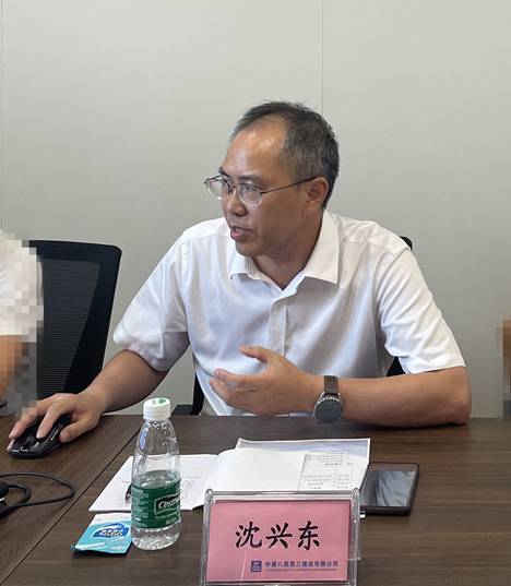 中建八局三公司專務程建軍、副總工程師沈興東、技術中心主任黃峰等熱情接待董事長之行。交流會上,程總對集團一行的到來表示熱烈歡迎,結合八局三公司宣傳片,介紹了三公司的發展歷史和新形勢下的發展戰略。