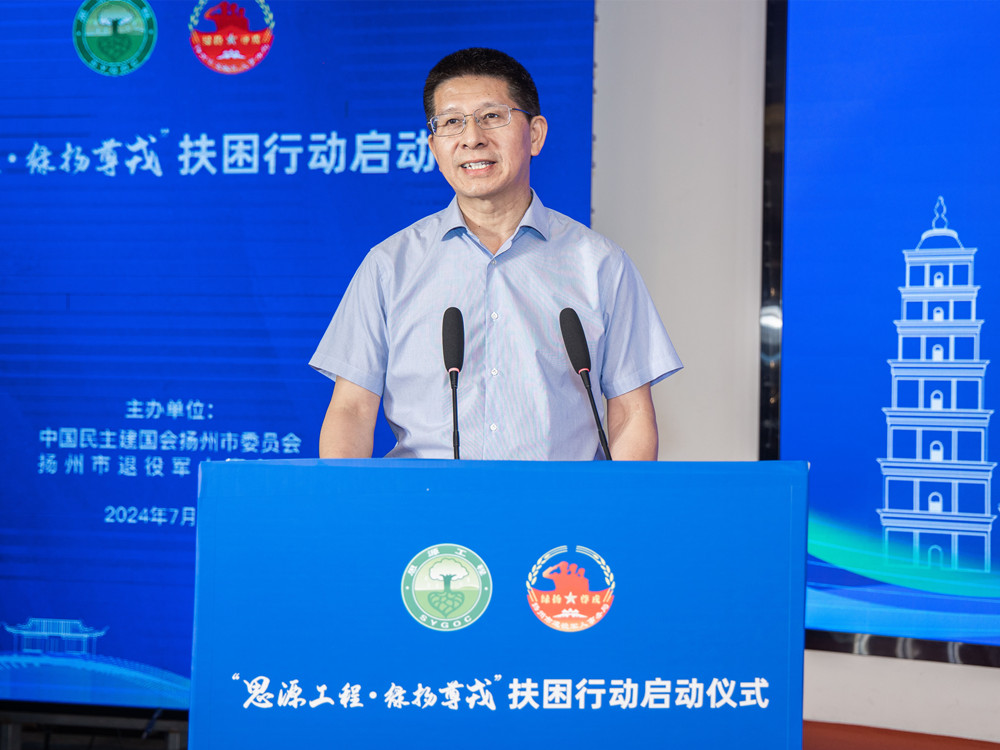 7月30日下午,由中國(guó)民主建國(guó)會(huì)揚(yáng)州市委員會(huì)、揚(yáng)州市退役軍人事務(wù)局聯(lián)合主辦的“思源工程·綠揚(yáng)尊戎”扶困行動(dòng)啟動(dòng)儀式在郵舉行。揚(yáng)州市委常委、統(tǒng)戰(zhàn)部部長(zhǎng)丁四海和高郵市委書(shū)記張利、民建揚(yáng)州市主委周啟泉等多位領(lǐng)導(dǎo)蒞臨現(xiàn)場(chǎng),共同見(jiàn)證這一公益盛事。集團(tuán)董事長(zhǎng)管民良作為民建高郵支部副主委及這項(xiàng)公益活動(dòng)的率先響應(yīng)企業(yè),應(yīng)邀出席活動(dòng)并發(fā)表了公益倡議。