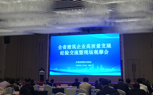 11月6日,全省建筑企業(yè)高質(zhì)量發(fā)展經(jīng)驗交流暨現(xiàn)場觀摩會在蘇州召開。江蘇省建筑行業(yè)協(xié)會會長張寧寧出席會議并講話, 省協(xié)會、市協(xié)會、建筑強縣協(xié)會有關(guān)負(fù)責(zé)同志,重點建筑企業(yè)負(fù)責(zé)人,共300余人參加會議。董事長管民良作為省協(xié)會常務(wù)理事及重點建筑企業(yè)負(fù)責(zé)人應(yīng)邀出席會議。
